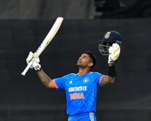 ನಂತರ ಬಂದ ತಿಲಕ್ ವಮಾ೯(೦) ಹೆಚ್ಚು ಹೊತ್ತು ನಿಲ್ಲದೆ ಶೂನ್ಯಕ್ಕೆ ವಿಕೆಟ್ ಒಪ್ಪಿಸಿದರು, ಆದರೆ ನಾಯಕ ಸೂರ್ಯ ಕುಮಾರ್ ಯಾದವ್ ಏಳು ಬೌಂಡರಿ ಹಾಗೂ ಎಂಟು ಸಿಕ್ಸರ್ ನೆರವಿನಿಂದ (100) ಶತಕ ಸಿಡಿಸಿ ತಂಡವನ್ನು ದ್ವಿಶತಕದ ಗಡಿ ದಾಟಿಸಿದರು.