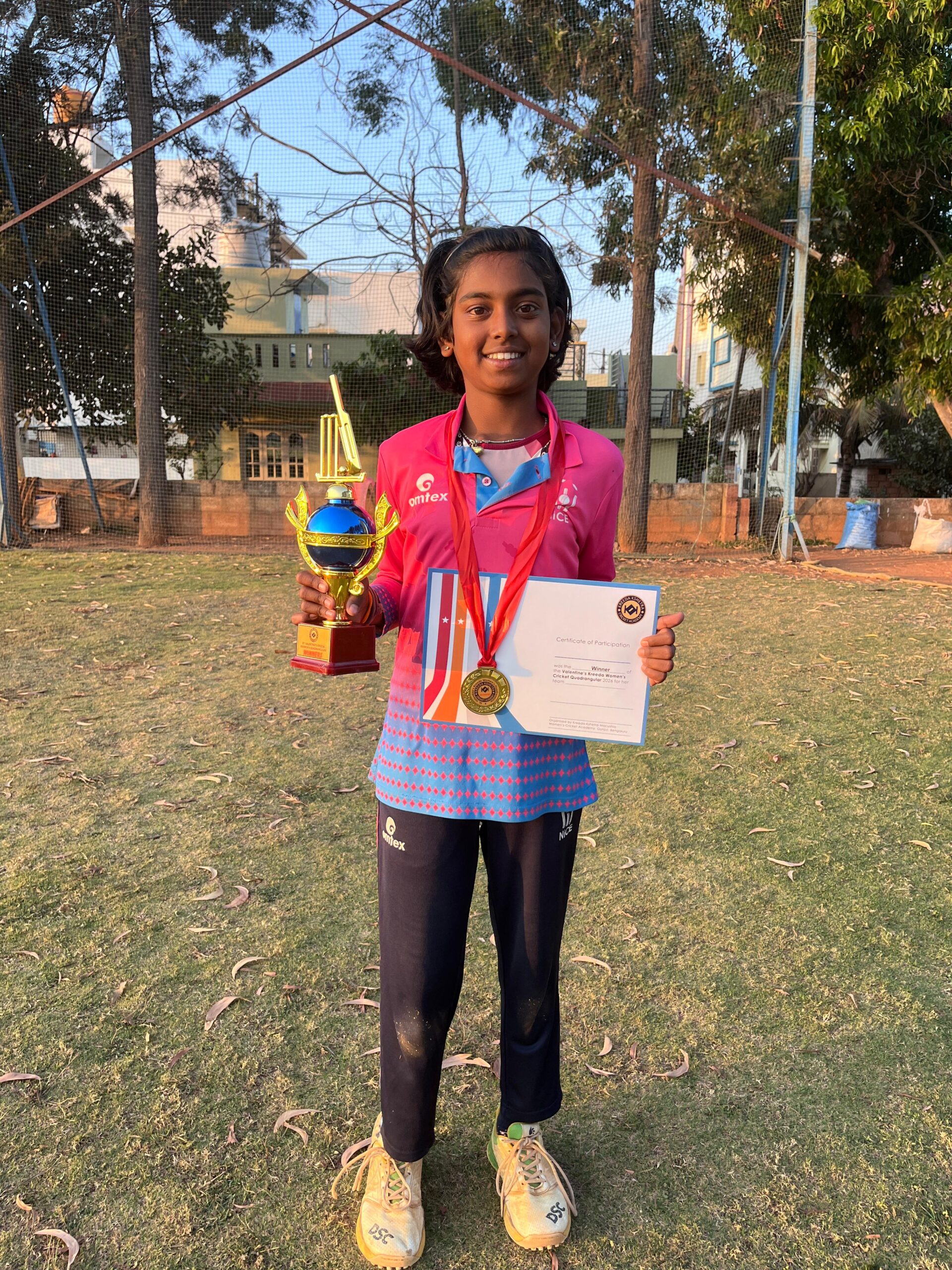 ಸೇಂಟ್ ವ್ಯಾಲೆಂಟೈನ್ ಕ್ರೀಡಾ ಮಹಿಳಾ ಕ್ವಾಡ್ರಾಂಗ್ಯುಲರ್–2026 ಟೂರ್ನಮೆಂಟ್ ನಲ್ಲಿ ದೊಡ್ಡಬಳ್ಳಾಪುರ ಮೂಲದ ಚಿಂತನಾ ಎಚ್ ಆರ್ ಅವರ ಅದ್ವಿತೀಯ ಆಟದಿಂದ ಒಂದು ಪಂದ್ಯದಲ್ಲಿ 5 ವಿಕೆಟ್ ಪಡೆದಿದ್ದಾರೆ. ಟೂರ್ನಮೆಂಟ್ನಲ್ಲಿ ಒಟ್ಟು 7 ವಿಕೆಟ್ಗಳನ್ನು ಪಡೆದಿದ್ದಾರೆ. ಅವರಿಗೆ ಪ್ಲೇಯರ್ ಆಫ್ ದ ಮ್ಯಾಚ್ ಹಾಗೂ ಬೆಸ್ಟ್ ಬೌಲರ್ ಪ್ರಶಸ್ತಿಗಳು ಲಭಿಸಿವೆ. ಫೈನಲ್ ಪಂದ್ಯದಲ್ಲಿ 17 ರನ್ಗಳನ್ನು ಸಹ ಗಳಿಸಿದ್ದಾರೆ.