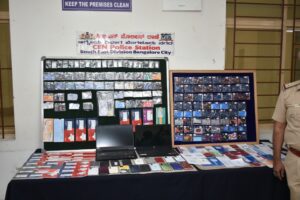 ಚಂದ್ರಲೇಔಟ್ ಪೊಲೀಸ್ ಠಾಣಾ ವ್ಯಾಪ್ತಿಯಲ್ಲಿ, ಮೊಬೈಲ್ ಫೋನ್‌ಗಳನ್ನು ಕದ್ದು ಇತರ ರಾಜ್ಯಗಳಲ್ಲಿ ಮಾರಾಟ ಮಾಡುತ್ತಿದ್ದ ಇಬ್ಬರು ಆರೋಪಿಗಳನ್ನು ಬಂಧಿಸಿದ್ದಾರೆ. ಒಟ್ಟು ₹10,50,000 ಮೌಲ್ಯದ ವಿವಿಧ ಕಂಪನಿಯ 52 ಮೊಬೈಲ್ ಫೋನ್‌ಗಳನ್ನು ವಶಪಡಿಸಿಕೊಳ್ಳಲಾಗಿದೆ. ಪ್ರಕರಣಕ್ಕೆ ಸಂಬಂಧಿಸಿದ ಪರಾರಿಯಾಗಿರುವ ಇತರ ಆರೋಪಿಗಳ ಶೋಧನಾ ಕಾರ್ಯ ಮುಂದುವರೆದಿವೆ ಎಂದು ಮಾಹಿತಿ ನೀಡಿದರು.
