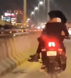 ಬೆಂಗಳೂರಿನ ಏರ್ಪೋರ್ಟ್ ರಸ್ತೆಯ ಯಲಹಂಕ ಫ್ಲೈ ಓವರ್ನಲ್ಲಿ ಯುವತಿ ಬೈಕ್ ಪೆಟ್ರೋಲ್ ಟ್ಯಾಂಕ್ ಮೇಲೆ ಕುಳಿತು ತನ್ನ ಸಂಗಾತಿಯನ್ನು ಅಪ್ಪಿಕೊಂಡು ಜಾಲಿ ರೈಡ್ ಮಾಡಿರುವ ಘಟನೆ ಮೇ 17ರ ರಾತ್ರಿ ನಡೆದಿದೆ.
