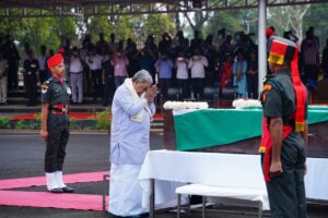 ಜಮ್ಮು ಕಾಶ್ಮೀರದಲ್ಲಿ ಅಪಘಾತಕ್ಕೀಡಾಗಿ ಹುತಾತ್ಮರಾದ ಯೋಧರುಗಳಾದ ಸುಬೇದಾರ್ ದಯಾನಂದ ತಿರುಕಣ್ಣನವರ್, ಮಹೇಶ್ ಮಾರಿಗೊಂಡ ಅವರ ಪಾರ್ಥಿವ ಶರೀರಗಳಿಗೆ ಬೆಳಗಾವಿಯ ಸೇನಾ ಯುದ್ಧ ಸ್ಮಾರಕದಲ್ಲಿ ಮುಖ್ಯಮಂತ್ರಿ ಸಿದ್ದರಾಮಯ್ಯ ಅವರು ಪುಷ್ಪ ನಮನ ಸಲ್ಲಿಸಿ ಅಂತಿಮ ಗೌರವ ಸಲ್ಲಿಸಿದರು.