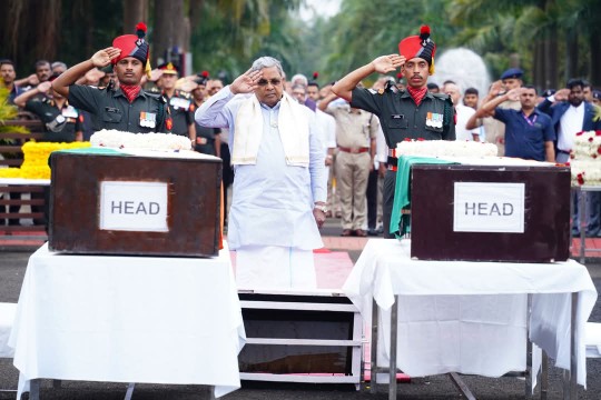 ಜಮ್ಮು ಕಾಶ್ಮೀರದಲ್ಲಿ ಅಪಘಾತಕ್ಕೀಡಾಗಿ ಹುತಾತ್ಮರಾದ ಯೋಧರುಗಳಾದ ಸುಬೇದಾರ್ ದಯಾನಂದ ತಿರುಕಣ್ಣನವರ್, ಮಹೇಶ್ ಮಾರಿಗೊಂಡ ಅವರ ಪಾರ್ಥಿವ ಶರೀರಗಳಿಗೆ ಬೆಳಗಾವಿಯ ಸೇನಾ ಯುದ್ಧ ಸ್ಮಾರಕದಲ್ಲಿ ಮುಖ್ಯಮಂತ್ರಿ ಸಿದ್ದರಾಮಯ್ಯ ಅವರು ಪುಷ್ಪ ನಮನ ಸಲ್ಲಿಸಿ ಅಂತಿಮ ಗೌರವ ಸಲ್ಲಿಸಿದರು.