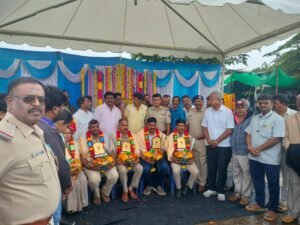 ಪಿಎಸ್ಐ ಜಗದೀಶ್ ರವರ ಒಂಭತ್ತನೆ ಹುತಾತ್ಮ ದಿನಾಚರಣೆ ಅಂಗವಾಗಿ ನಗರ ಠಾಣೆ ಪಿಎಸ್ಐ ಕೃಷ್ಣಪ್ಪ, ಎಎಸ್ಐ ಕೃಷ್ಣಮೂರ್ತಿ ಪೇದೆಗಳಾದ ಪಾಂಡುರಂಗ, ಪ್ರಕಾಶ್ ಹಾಗೂ ಯೋಗಶ್ರೀ ಅವರನ್ನು ಸನ್ಮಾನಿಸಲಾಯಿತು.