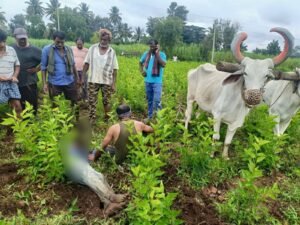 ಜಮೀನಲ್ಲಿ ಉಳುಮೆ ಮಾಡುವ ವೇಳೆ ಹೃದಯಾಘಾತದಿಂದ ರೈತ ಸಾವನ್ನಪ್ಪಿದ ಘಟನೆ