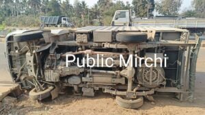 ಅದೃಷ್ಟವಶಾತ್ ಚಾಲಕ ಪ್ರಾಣಾಪಾಯದಿಂದ ಪಾರಾಗಿದ್ದು, ಗೂಡ್ಸ್ ವಾಹನ ಜಖಂಗೊಂಡಿದೆ.