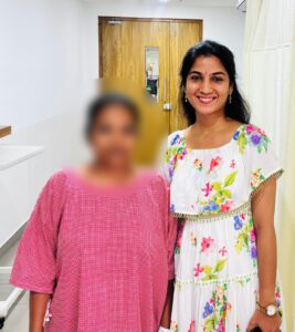 ಅವರು ಸ್ತ್ರೀರೋಗ ತಜ್ಞೆ ಡಾ. ಸಂಸ್ಕೃತಿ ಅವರನ್ನು ಸಂಪರ್ಕಿಸಿದಾಗ, ತೀವ್ರ ತಪಾಸಣೆಯ ನಂತರ ಗರ್ಭಾಶಯದಲ್ಲಿ ಅನೇಕ ಫೈಬ್ರಾಯ್ಡ್ಗಳು (ಗರ್ಭಾಶಯದ ಟ್ಯೂಮರ್ಗಳು) ಇರುವುದನ್ನು ಪತ್ತೆಹಚ್ಚಲಾಯಿತು. ವಿಶೇಷವಾಗಿ, 12 ಸೆಂ.ಮೀ ಗಾತ್ರದ ಅಪರೂಪದ ಬ್ರಾಡ್ ಲಿಗಮೆಂಟ್ ಫೈಬ್ರಾಯ್ಡ್ ಕಂಡುಬಂದಿತ್ತು. ಇದು ಮೂತ್ರನಾಳ (ಯುರೇಟರ್) ಮೇಲೆ ಒತ್ತಡ ಉಂಟುಮಾಡುತ್ತಿದ್ದು, ಚಿಕಿತ್ಸೆ ಕೊಡದಿದ್ದರೆ ಕಿಡ್ನಿ ವೈಫಲ್ಯಕ್ಕೆ ಕಾರಣವಾಗಬಹುದಿತ್ತು.