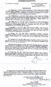 ಗ್ರಾಮೀಣಾಭಿವೃದ್ಧಿ ಇಲಾಖೆಯ ಆಯುಕ್ತೆ ಸಿ.ಟಿ.ಶಿಲ್ಪಾ ನಾಗ್ ಅವರನ್ನು ಚಾಮರಾಜನಗರ ಜಿಲ್ಲಾಧಿಕಾರಿಯಾಗಿ, ಬಾಗಲಕೋಟೆ ಜಿಲ್ಲಾ ಪಂಚಾಯಿತಿ ಮುಖ್ಯ ಕಾರ್ಯನಿರ್ವಾಹಕ ಅಧಿಕಾರಿ ಟಿ.ಭೂಬಾಲನ್ ಅವರನ್ನು ವಿಜಯಪುರ ಜಿಲ್ಲಾಧಿಕಾರಿಯಾಗಿ, ತುಮಕೂರು ಮಹಾನಗರ ಪಾಲಿಕೆಯ ಆಯುಕ್ತ ಎಚ್.ವಿ.ದರ್ಶನ್ ಅವರನ್ನು ಐಟಿ ಮತ್ತು ಬಿಟಿ ಇಲಾಖೆಯ ನಿರ್ದೇಶಕರಾಗಿ ವರ್ಗಾವಣೆ ಮಾಡಲಾಗಿದೆ.