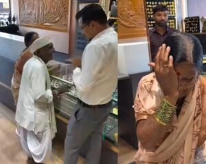 ಸದ್ಯದ ಚಿನ್ನದ ಬೆಲೆಯ ಅರಿವಿಲ್ಲದೆ ಅಂಗಡಿ ಬಾಗಿಲು ಹತ್ತಿದ ಈ ದಂಪತಿ ತಮ್ಮ ಕೈಚೀಲದಿಂದ 1200 ರೂ. ತೆಗೆದಿದ್ದಾರೆ. ಇಷ್ಟು ಹಣ ಸಾಲದು ಎಂದು ಅಂಗಡಿಯಾತ ಹೇಳಿದಾಗ ವೃದ್ಧ ತನ್ನ ಜೇಬಿನಿಂದ ಚಿಲ್ಲರೆ ನಾಣ್ಯಗಳನ್ನು ಹೊರತೆಗೆದಿದ್ದಾನೆ. ಈ ದೃಶ್ಯ ಕಂಡು ಅಂಗಡಿಯಾತ ಕರಗಿ ನೀರಾಗಿದ್ದಾನೆ.