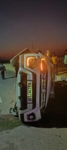 ಪಲ್ಟಿ ಹಿನ್ನೆಲೆ ಕಾರು ಸಂಪೂರ್ಣ ಜಖಂಗೊಂಡಿದೆ.