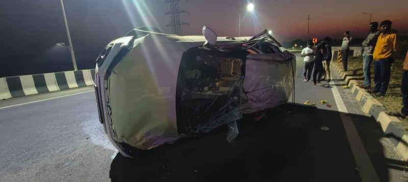 ಪಲ್ಟಿ ಹಿನ್ನೆಲೆ ಕಾರು ಸಂಪೂರ್ಣ ಜಖಂಗೊಂಡಿದೆ.
