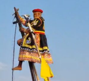 15 ಅಡಿ ಎತ್ತರದ ಬಿಲ್ಲನೇರಿದ ಗೊರವಯ್ಯ ರಾಮಪ್ಪ ಸದ್ದಲೇ ಎಂದು ಅಲ್ಲಿ ನೆರೆದಿದ್ದ ಜನರನ್ನು ಸುಮ್ಮನಾಗಿಸಿ, “ಸಂಪಾದಿತಲೇ ಪರಾಕ್” ಎಂದು ಭವಿಷ್ಯವಾಣಿ ನುಡಿದಿದ್ದಾರೆ.