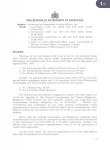 ಬೆಂಗಳೂರು ಪೊಲೀಸ್ ಕಮಿಷನರ್ ಬಿ.ದಯಾನಂದ್, ಡಿಸಿಪಿ ಶೇಖರ್ ಹೆಚ್.ಟಿ, ಕಬ್ಬನ್ ಪಾರ್ಕ್ ಪೊಲೀಸ್ ಠಾಣೆ ASI ಬಾಲಕೃಷ್ಣ ಹಾಗೂ ಇನ್ಸ್ಪೆಕ್ಟರ್ ಗಿರೀಶ್ ಅವರನ್ನು ಅಮಾನತು ಮಾಡಿ ರಾಜ್ಯ ಸರ್ಕಾರ ಆದೇಶ ಹೊರಡಿಸಿತ್ತು. ಆದ್ರೆ, ಇದೀಗ ಏಕಾಏಕಿ ರಾಜ್ಯ ಸರ್ಕಾರ ಯುಟರ್ನ್ ಹೊಡೆದಿದ್ದು, ಪೊಲಿಸ್ ಅಧಿಕಾರಿಗಳ ಅಮಾನತು ಆದೇಶವನ್ನು ವಾಪಸ್ ಪಡೆದುಕೊಂಡಿದೆ.